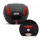 Sin Base. Diseño elegante sobre una base en negro y el logotipo de GIVI plateado en relieve. Además están equipados con un potente e innovador catadióptrico construido en forma de nido de abeja para aumentar la visibilidad del motorista cuando la luz se reflecta en el baúl. Gracias a sus 33 lt de capacidad permiten albergar un casco integral junto con otros elementos de la moto como la documentación, el antirrobo y el traje de agua. El top case B33 es el primer baúl que incorpora el nuevo sistema de sellado desarrollado por GIVI para mejorar su estanqueidad, incluso en las condiciones de lluvia más adversas. A partir de ahora todos los nuevos baules y maletas incorporarán la nueva tecnología de la firma italiana.
