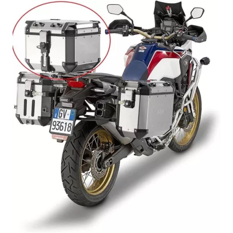 Esta compacta maleta de 42 L., desarrollada para ubicarse en la parte posterior, se fija a la moto mediante una parrilla MONOKEY®. Su estructura cuadrada, realizada totalmente en aluminio con acabado natural, recupera el diseño «Adventure» típico de las maletas laterales OUTBACK. Los perfiles y los parachoques angulares a contraste de tecno polímero negro añaden el toque final de estilo.