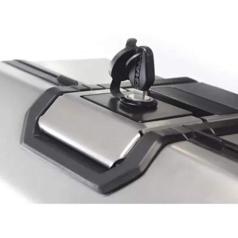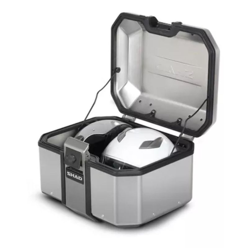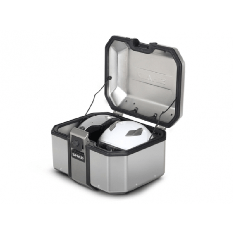 La maleta top TR48 está diseñada y fabricada 100% en Barcelona y tiene capacidad para un casco trail o dos cascos (integral + jet). Cuenta con un diseño estructural aerodinámico e integrado fabricado en aleación de aluminio endurecible, un tipo de aluminio que permite un grosor reducido de 1,2 mm para obtener la máxima resistencia con un peso mínimo. Bisagras de acero inoxidable AISI 304.