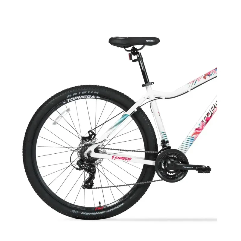 La Bicicleta MTB Topmega Flamingo R29 21Vel Blanco Rosa Celeste es una excelente opción para quienes buscan estilo, rendimiento y versatilidad en sus recorridos. Su cuadro de aluminio liviano proporciona una estructura resistente y ágil, ideal para terrenos urbanos y rurales. El rodado 29" mejora la estabilidad y el confort en caminos irregulares, mientras que su transmisión Shimano de 21 velocidades permite adaptarse con facilidad a distintas pendientes. Además, los frenos a disco mecánicos aseguran una frenada precisa y segura en cualquier condición. Su diseño en blanco, rosa y celeste no solo destaca por su estética moderna, sino que también refleja personalidad y dinamismo en cada salida.