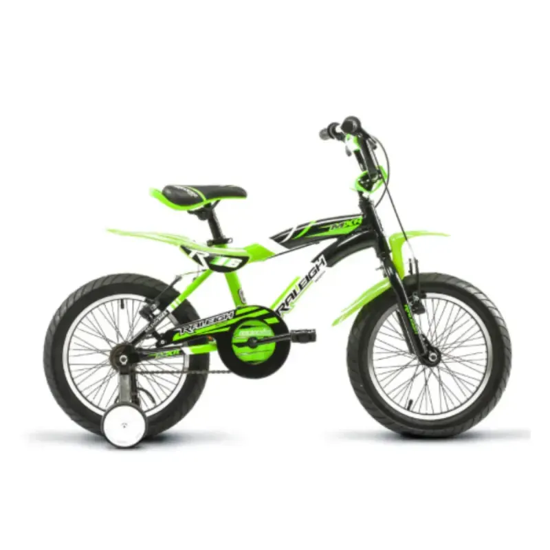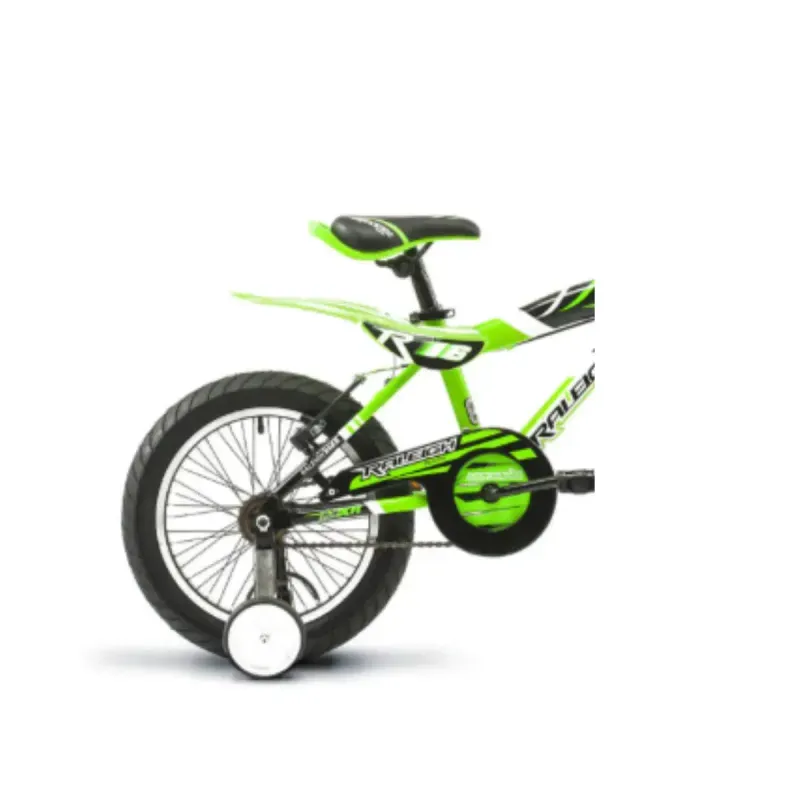 La Bicicleta Raleigh R16 MXR16 Verde Negro está pensada para que los más chicos vivan sus primeras aventuras sobre ruedas con seguridad y estilo. Su cuadro de aluminio reforzado, junto al rodado 16 pulgadas, ofrece una estructura liviana, resistente y fácil de maniobrar. Equipada con transmisión monovelocidad, frenos V-Brake delanteros y traseros, guardabarros, cubrecadena y rueditas estabilizadoras, brinda confianza y protección en cada paseo. Ideal para niños de entre 4 y 6 años, esta bici combina diseño llamativo, componentes duraderos y una experiencia divertida para que cada salida sea inolvidable.