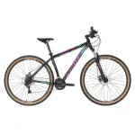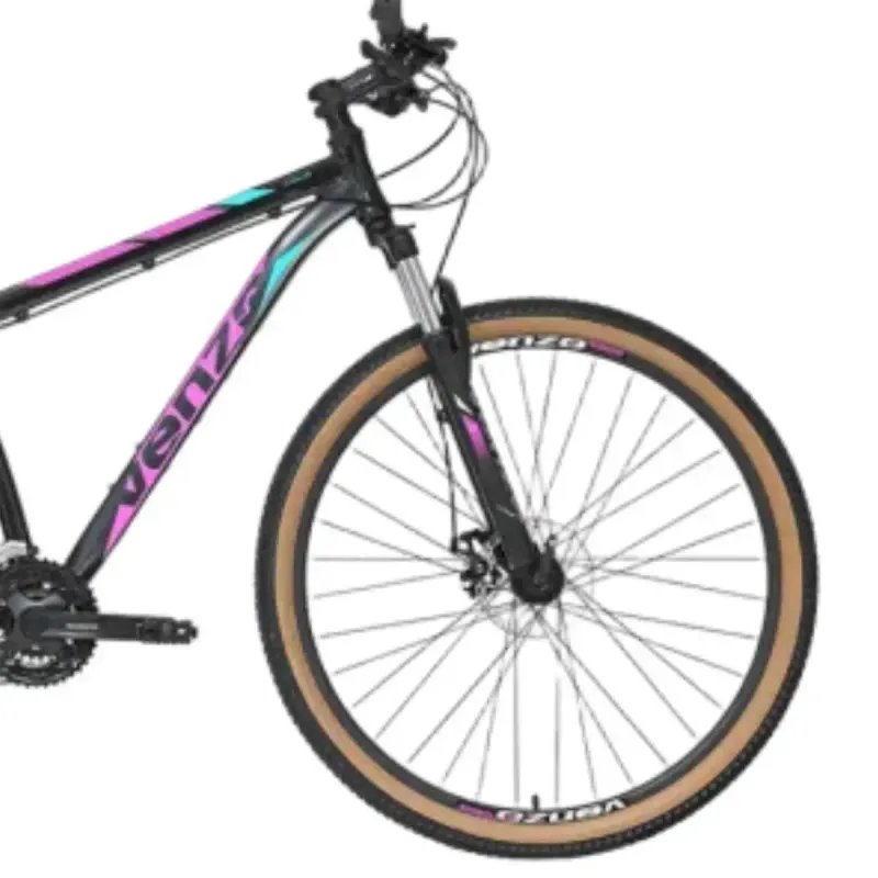 Bicicleta Venzo Eolo 2 1 Negra Rosa Disc Mec combina rendimiento con un diseño vibrante. Su cuadro de aluminio 6061, 21 velocidades Shimano, y frenos a disco mecánicos aseguran una conducción segura y eficiente. El rodado 29 y la suspensión con bloqueo permiten enfrentar terrenos variados. El color negro con rosa le da un toque distintivo y audaz