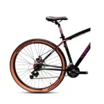 La Bicicleta Venzo Loki 2.1 Ng Rosa Teal Disc Mecánica R29 es una opción ideal para quienes buscan rendimiento y estilo en una MTB de entrada. Equipada con transmisión Shimano de 21 velocidades, frenos a disco mecánicos Clarks y cubiertas Chaoyang Victory rodado 29, esta bici ofrece una experiencia de manejo suave y segura en terrenos variados. Su cuadro de aluminio 6061 con suspensión delantera y bloqueo en botella brinda comodidad y control, mientras que los componentes Venzo en manillar, potencia, portasilla y asiento aseguran durabilidad y diseño moderno. El color negro con detalles rosa y teal le da un toque vibrante y femenino sin perder robustez.