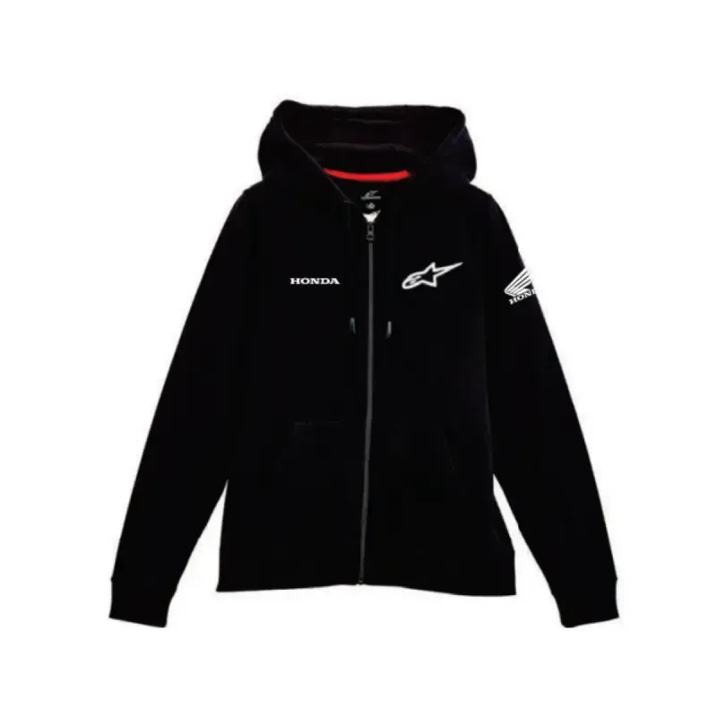 La Campera C Capucha Honda Mujer Alpinestars Hoodie Ageless Chest 2025 es una prenda que combina estilo urbano con detalles técnicos pensados para el confort. Confeccionada en algodón suave, presenta un diseño con capucha forrada en jersey, cierre frontal con cremallera espiral invertida expuesta, y un logotipo bordado en 3D en el pecho que resalta la identidad de la marca. Sus puños y dobladillo acanalados aseguran un ajuste cómodo, mientras que las puntas de cordón sumergidas y las etiquetas internas y externas completan un look moderno y funcional. Ideal para quienes buscan una campera versátil, con un toque deportivo y detalles de calidad.