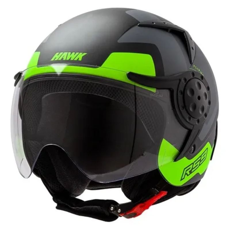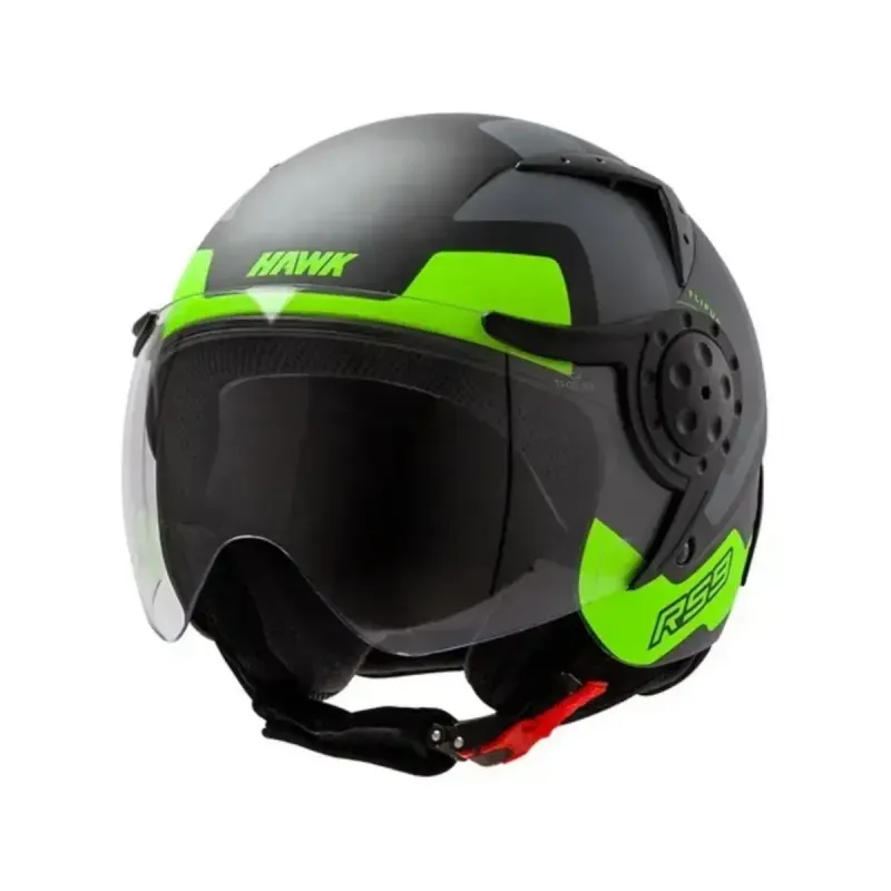El Casco Abierto Hawk RS9 Bullet cuenta con un diseño deportivo de última generación y un acabado en laca tricapa que le da un toque moderno y elegante. Está fabricado en ABS virgen, un material resistente y ligero, mientras que el interior está forrado en poliestireno recubierto con velour para mayor comodidad. Además, incluye un visor con tratamiento antiscratch que proporciona una mayor protección contra los elementos. Su cierre es de hebilla automática, lo que garantiza un ajuste seguro y fácil de usar. Con ventilación superior, delantera e inferior trasera, este casco ofrece frescura en tus trayectos diarios