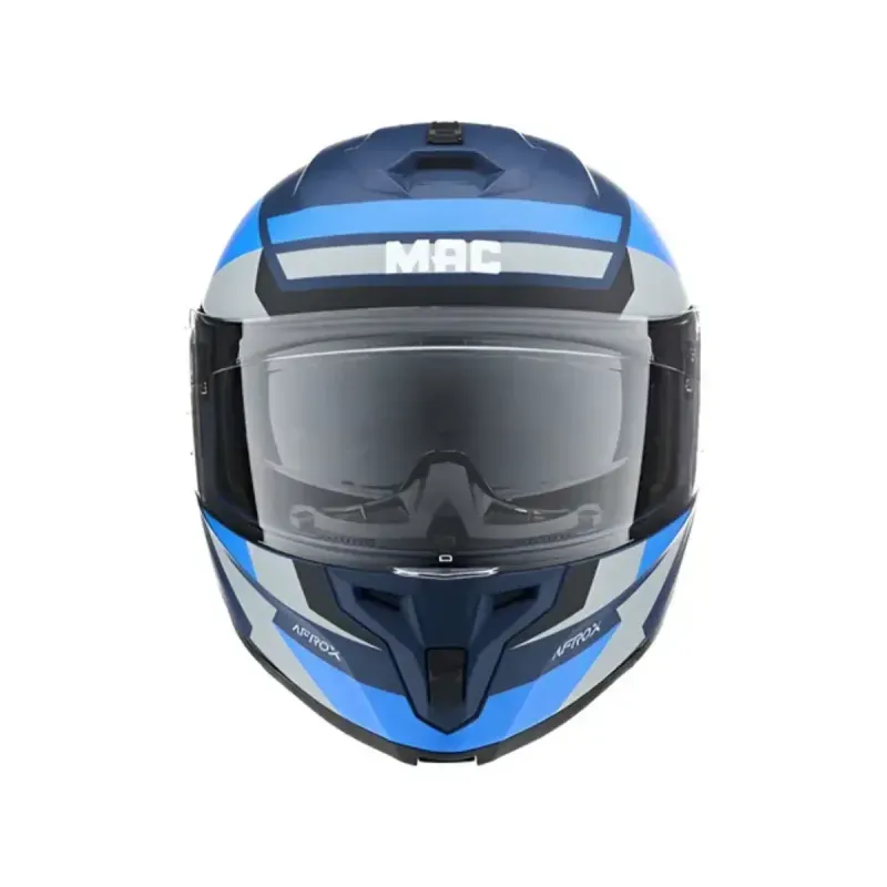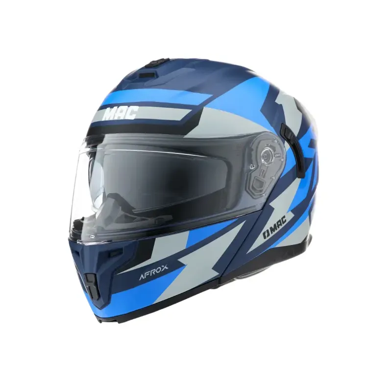 El Casco Mac Rebatible FF166 Afrox BL GY MT es una excelente opción para quienes buscan comodidad, seguridad y estilo en un solo producto. Su diseño modular permite levantar la mentonera fácilmente, ideal para trayectos urbanos o viajes largos. El doble visor ofrece protección solar interna y una visión clara con el visor principal, adaptándose a distintas condiciones de luz. Su acabado mate en tonos azul y gris le da un toque moderno y sobrio, mientras que su estructura en ABS inyectado garantiza resistencia sin comprometer la ligereza. Disponible en múltiples talles, este casco se ajusta perfectamente a diferentes usuarios, y cumple con la exigente certificación europea ECE 22-06, lo que lo convierte en una opción confiable para el uso diario o touring.