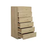 El CHIFFONIER PLATINUM - 6 CAJ. CORRED. METAL - SAVANNA - 92007 es la solución ideal para quienes buscan organización y estilo en un solo mueble. Con un diseño moderno y líneas limpias, este chifonier se adapta perfectamente a cualquier dormitorio gracias a su color savanna, que aporta calidez y elegancia. Sus 6 cajones espaciosos con correderas metálicas permiten almacenar ropa, accesorios o lo que necesites, manteniendo todo en orden y al alcance. Fabricado en melamina resistente, ofrece una estructura sólida y duradera. Con 116 cm de alto, 62 cm de ancho y 47 cm de profundidad, aprovecha el espacio vertical sin ocupar demasiado lugar. Es una pieza funcional que combina estética y practicidad para transformar tu ambiente.