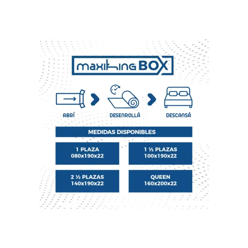 El Colchón Maxiking en Caja Espuma Alta Densidad 80x190x22 cm es una excelente opción para quienes buscan firmeza y practicidad en un solo producto. Diseñado con espuma de alta densidad de 25 kg/m³, ofrece un soporte anatómico ideal para personas de hasta 90 kg, garantizando un descanso confortable. Su presentación en caja y envasado al vacío lo convierte en una solución moderna y funcional, perfecta para espacios reducidos o mudanzas.