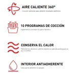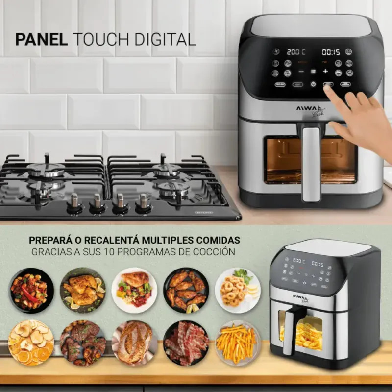 La freidora de aire Aiwa AW-FA80I es una opción potente y versátil para quienes buscan una cocina más saludable sin renunciar al sabor y la textura crujiente de los alimentos. Con una capacidad generosa de 8 litros y una potencia de 2000W, permite preparar porciones abundantes para toda la familia. Su tecnología de circulación de aire caliente 360° garantiza una cocción uniforme, reduciendo el uso de aceite hasta en un 85%. Además, cuenta con un panel digital táctil que facilita la selección entre sus 10 programas de cocción, ajustando automáticamente temperatura y tiempo para obtener resultados óptimos. Su temperatura regulable oscila entre 80°C y 200°C, y su temporizador programable de hasta 60 minutos brinda un control preciso sobre cada preparación. La canasta desmontable con superficie antiadherente simplifica la limpieza, mientras que su visor integrado permite monitorear el proceso sin necesidad de abrir la tapa.
