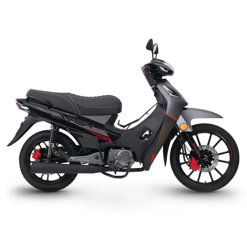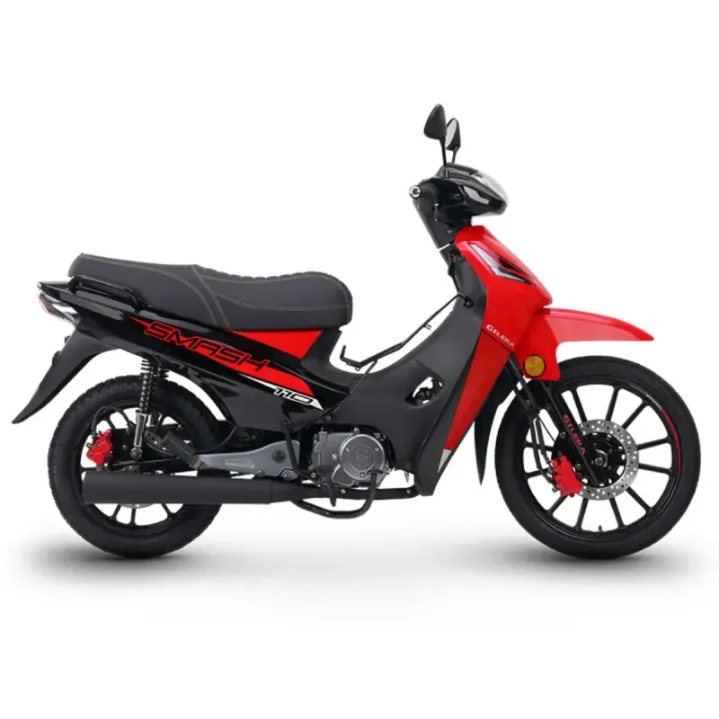 La Gilera Smash 110 Automática CBS 2025 es una cub urbana que combina simplicidad mecánica, diseño funcional y seguridad activa para el día a día. Equipada con un motor monocilíndrico de 107 cc, refrigerado por aire y alimentado por carburador, ofrece una conducción suave y económica. Su transmisión semiautomática de 4 marchas elimina el uso de embrague, lo que la vuelve ideal para usuarios nuevos o para quienes buscan practicidad. El sistema de frenos CBS, que distribuye la fuerza de frenado entre ambas ruedas, mejora la estabilidad en maniobras repentinas. Las llantas de rayos de 17" y 14", la suspensión hidráulica y el peso contenido de 100 kg completan un conjunto ágil, confiable y accesible. Además, incluye puerto USB, tablero analógico y ópticas halógenas, consolidando una propuesta urbana eficiente y segura.