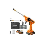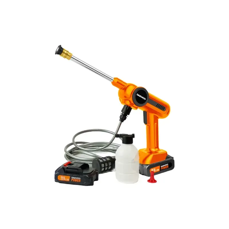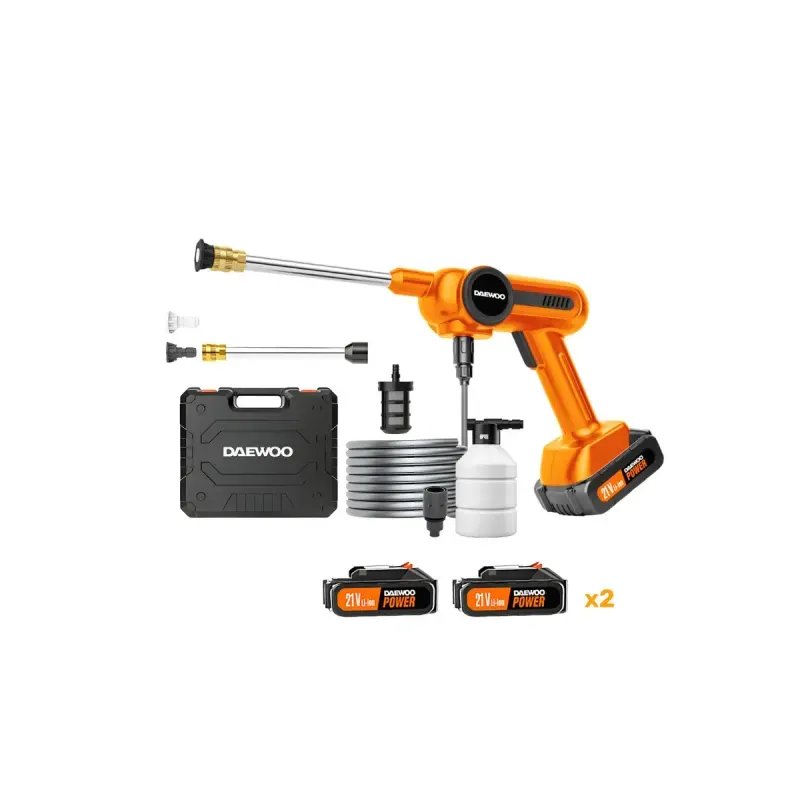 La hidrolavadora Daewoo DAX65-LI inalámbrica de 100 W es una herramienta compacta, portátil y eficiente diseñada para facilitar tareas de limpieza en el hogar, el auto o espacios al aire libre sin necesidad de conexión directa a la red eléctrica gracias a su batería recargable integrada.