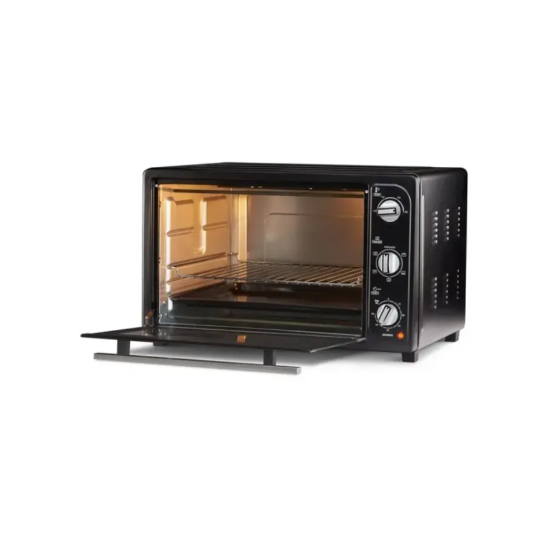 El Horno Eléctrico BGH Dúo 65Lts 2200W Negro (BHE65M19N) es ideal para quienes buscan practicidad y potencia en la cocina. Con una capacidad de 65 litros y un diseño moderno en acero inoxidable y vidrio, permite preparar desde recetas simples hasta platos más elaborados.