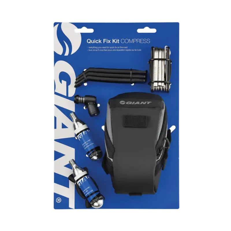 El Inflador Giant CO2 Quick Fix Combo Kit es un set completo pensado para ciclistas que buscan soluciones rápidas y prácticas en ruta o entrenamiento. Incluye un bolso bajo asiento resistente, dos palancas para neumáticos, una multiherramienta de 9 funciones y un inflador de CO2 con dos cartuchos de 16 g, lo que garantiza estar preparado ante cualquier imprevisto. Su diseño compacto en color negro permite llevarlo sin ocupar espacio extra, mientras que la calidad de los materiales asegura durabilidad y confiabilidad. En conjunto, este kit se convierte en un aliado indispensable para quienes desean rodar con tranquilidad y seguridad, sabiendo que cuentan con todo lo necesario para resolver emergencias en el camino.