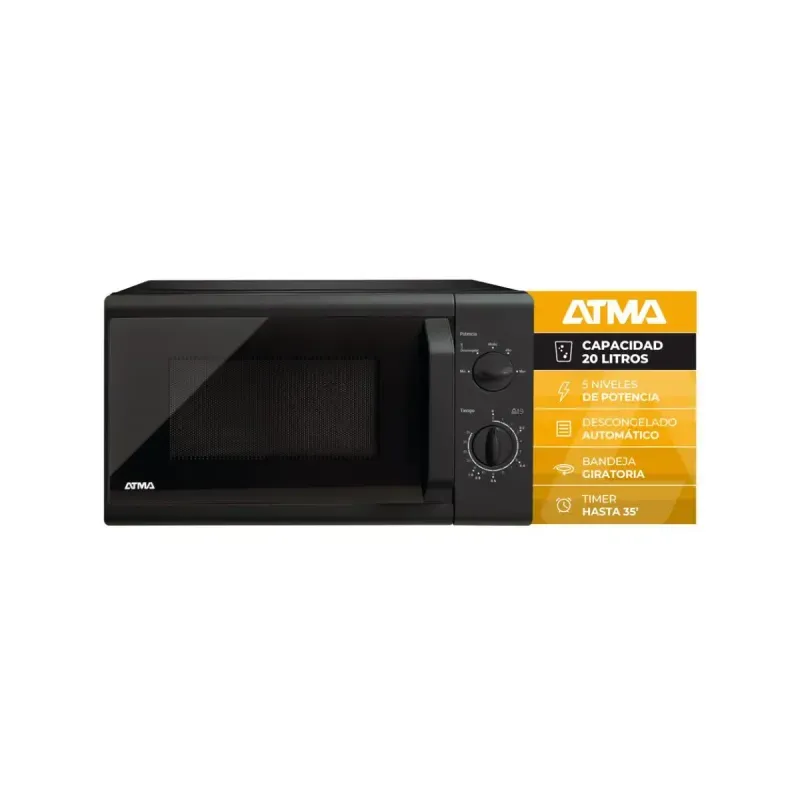 El Microondas Atma de 20 litros es ideal para quienes buscan practicidad y simplicidad en la cocina. Permite calentar y descongelar alimentos de manera rápida y eficiente, siendo una excelente opción para el uso diario.