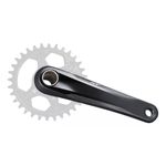 Este producto es un conjunto de palancas para bicicleta de montaña con un diseño hueco llamado Hollowtech 2 que reduce el peso y aumenta la rigidez. Está diseñado para ser utilizado con sistemas de transmisión de 12 velocidades y no incluye platos ni caja pedalera. Tiene una longitud de 175 mm y un ancho de 52 mm.