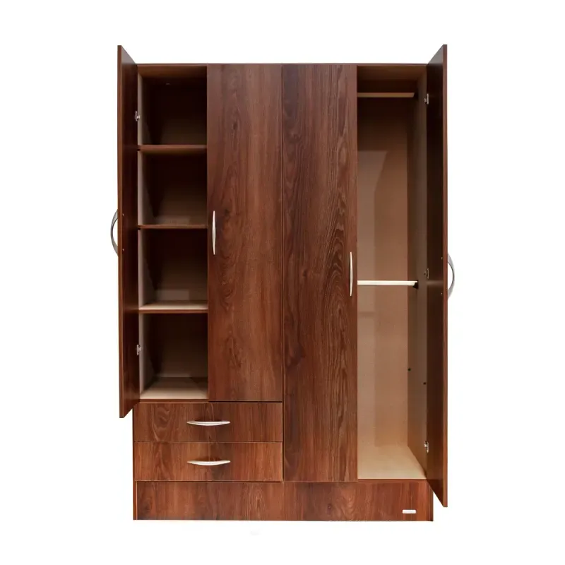 El PLACARD PLATINUM BASE 4 PTAS ABRIR 2 CAJONES 4 ESTANTES 2 BARRALES ROBLE ANTIGUO 91402 es una solución ideal para quienes buscan funcionalidad y estilo en su dormitorio. Su diseño contemporáneo en melamina de 15 mm lo hace resistente y fácil de limpiar, mientras que su color roble antiguo aporta calidez y elegancia. Con 4 puertas batientes, 2 cajones con guías metálicas, 4 estantes y 2 barrales, ofrece una excelente capacidad de guardado y organización. Sus medidas de 1,22 m de ancho, 1,85 m de alto y 0,48 m de profundidad lo convierten en una opción compacta pero espaciosa, perfecta para optimizar el espacio sin renunciar al diseño. No incluye espejo ni boxes, pero cumple con las necesidades básicas de almacenamiento con eficiencia y estilo.