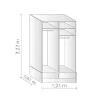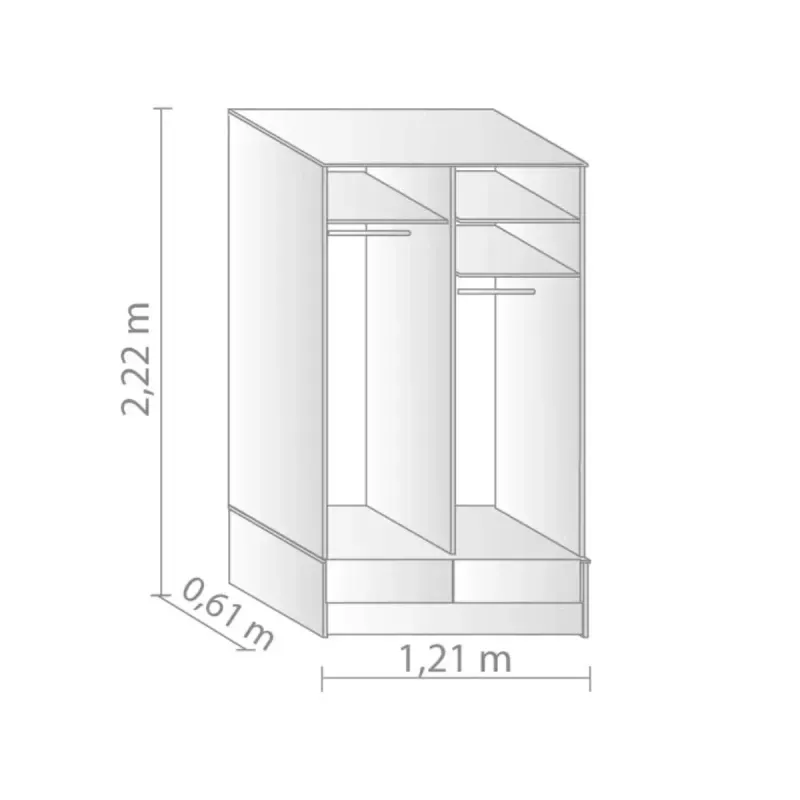 El Placard Platinum Premium 2 Ptas Corr 2 Caj C Corr Met 3 Estantes 2 Barr Alum Gris Andino 63409 es una excelente opción para quienes buscan funcionalidad y estilo en su dormitorio. Con su diseño moderno en melamina color gris andino, este placard ofrece 2 puertas corredizas que se deslizan suavemente sobre rieles de aluminio, optimizando el espacio. En su interior, cuenta con 3 estantes fijos, 2 cajones con correderas metálicas y 2 barrales de aluminio, ideales para organizar ropa doblada y colgada. Su estructura robusta y dimensiones generosas (121 cm de ancho, 55 cm de profundidad y 222 cm de alto) lo convierten en una solución práctica y elegante para el almacenamiento diario.