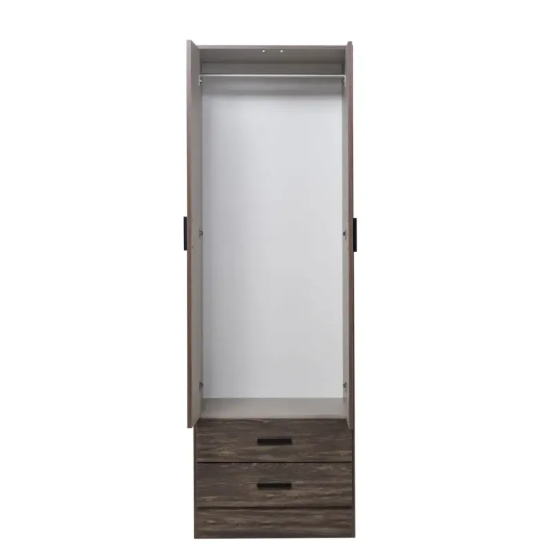 El Placard Ricchezze Tana Plus 2 Puertas 2 Cajones 181x58x47 Moccha (34810033) es una opción ideal para quienes buscan funcionalidad y diseño en un solo mueble. Confeccionado en MDP de 15 mm con textura touch, ofrece una estructura resistente y moderna. Su diseño compacto de 58 cm de ancho y 47 cm de profundidad lo hace perfecto para espacios reducidos, sin sacrificar capacidad de guardado. Cuenta con 2 puertas batientes, 2 cajones espaciosos, 3 estantes internos y un sector de colgado, brindando una organización eficiente para ropa y accesorios. Su acabado en color Moccha aporta calidez y elegancia al dormitorio.
