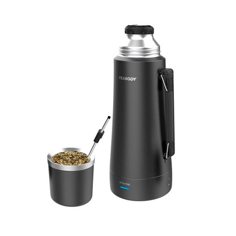 Termo Peabody PE-ET1001D RN 1 Lt Eléctrico Dark Silver es la solución ideal para quienes buscan practicidad y eficiencia al momento de preparar mate o infusiones. Su diseño moderno en color Dark Silver, junto con su doble capa de acero inoxidable 18/8 con aislación por vacío, garantiza una excelente conservación de temperatura. Ofrece dos niveles de calentamiento: modo MATE (75 °C) y modo MÁX (90 °C), con corte automático para mayor seguridad. Además, incluye bombilla integrada en la manija, es libre de BPA y cuenta con cable extraíble, lo que lo hace cómodo para transportar y usar en cualquier lugar.