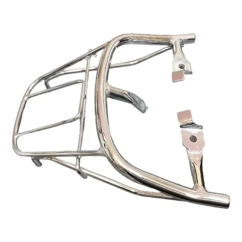 Este Portaequipaje Cromado para Yamaha YBR125 es una opción ideal para quienes buscan resistencia, estilo y funcionalidad en su moto. Fabricado en acero macizo con baño de cromo, ofrece una excelente durabilidad frente a la intemperie y un acabado brillante que realza la estética del YBR125. Su diseño incluye agarraderas laterales integradas, puntos de anclaje reforzados y superficie plana compatible con baúles de hasta 30 litros. Es compatible con modelos YBR125 de origen chino y brasilero fabricados entre 2000 y 2017, y su instalación es directa, sin necesidad de adaptaciones.